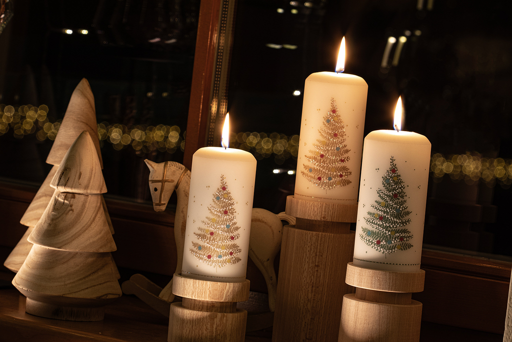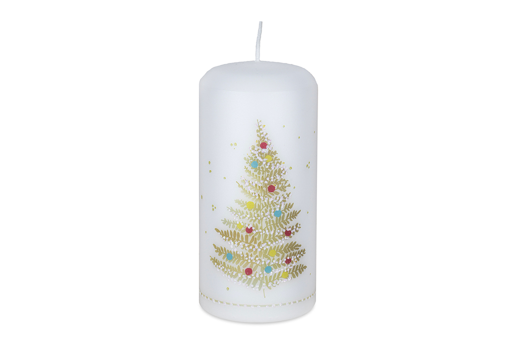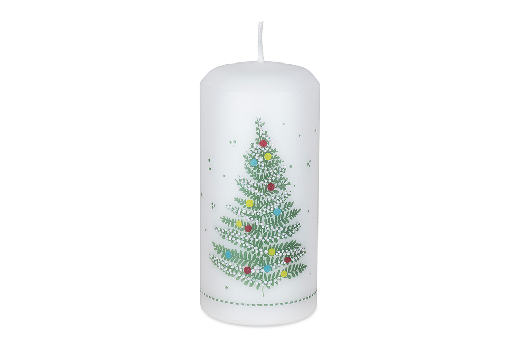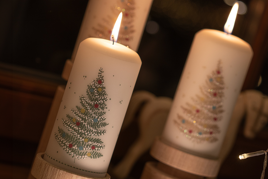 Kolekce vánočních svíček Noelia spojuje to nejlepší ze dvou světů – moderní tiskovou technologii a poctivou ruční práci našich mistrů svíčkařů. Základ tvoří hedvábně bílý povrch svíčky, na který je aplikován motiv vánočního stromku. Ten byl původně nakreslen ručně, a proto v sobě nese jemnost, nedokonalost a duši autentické ilustrace. Následně je precizně reprodukován moderním tiskem, díky kterému si každá svíčka zachovává čistotu a detail ruční kresby.