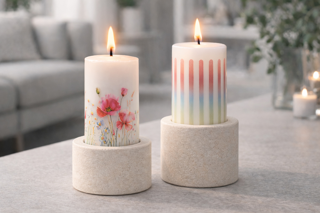 Kolekce Poppy představuje dekorativní svíčky s motivem lučního kvítí a výrazných vlčích máků. Bílé svíčky zdobí barevný tisk inspirovaný akvarelovou kresbou, který působí jemně a přirozeně. Každá svíčka je ručně škrábaná, takže má lehce strukturovaný povrch a originální charakter.