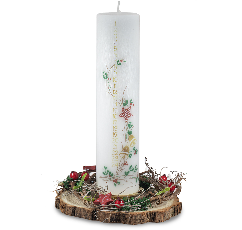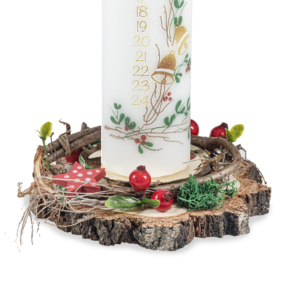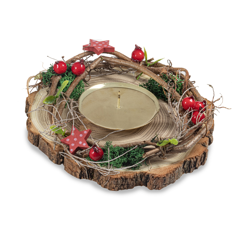 Dřevěný dekorativní svícen s hvězdami, který je ideální doplněk ke kalendářním svíčkám.