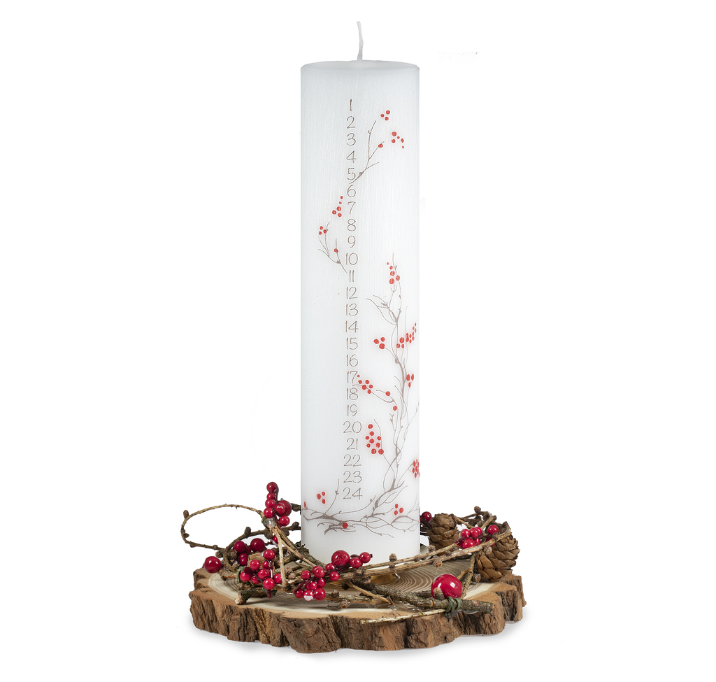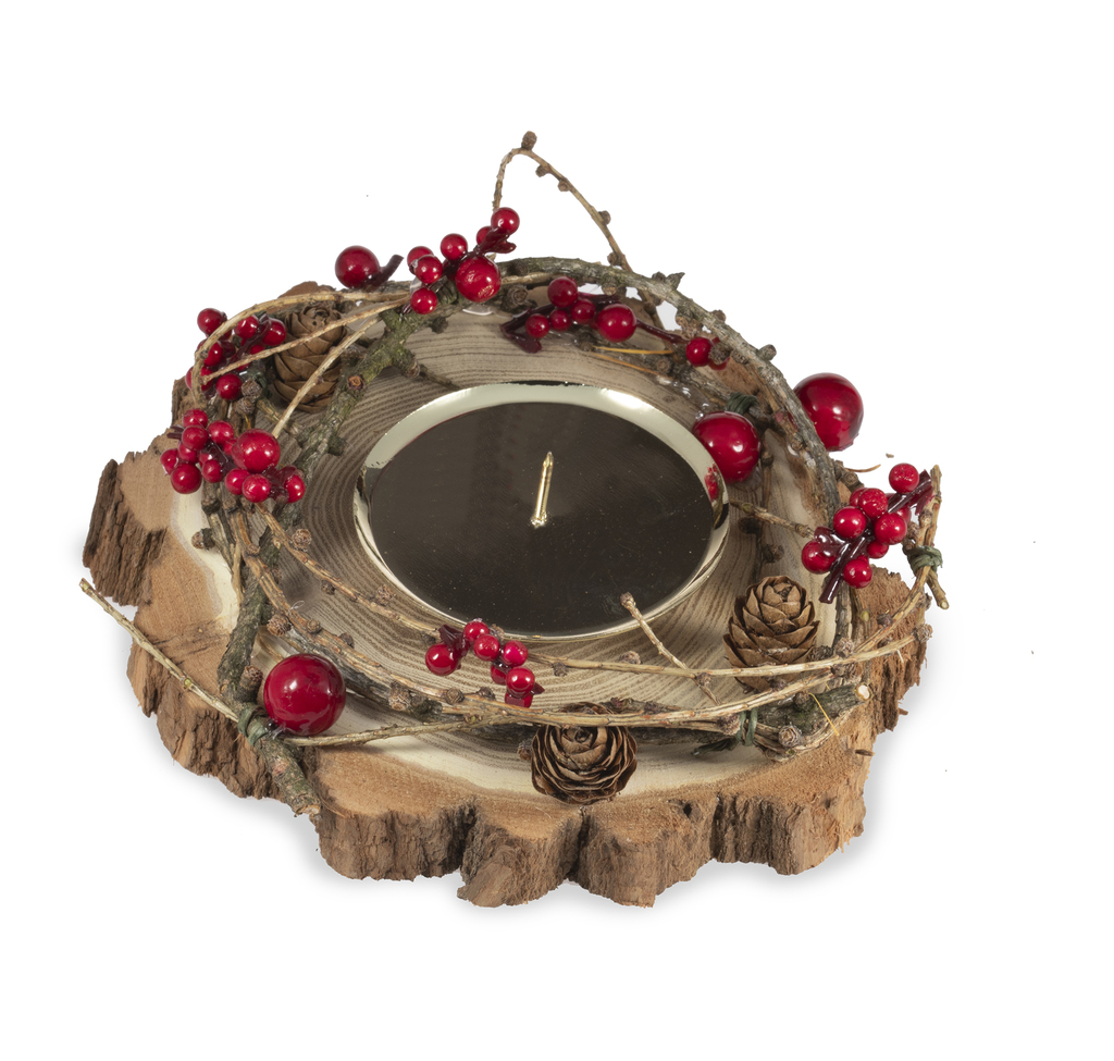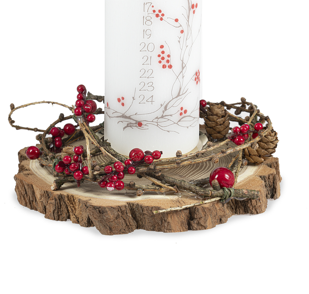 Dřevěný dekorativní svícen, který je ideální doplněk ke kalendářním svíčkám.