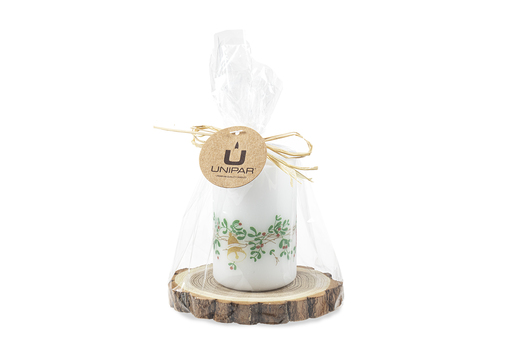 Povrch svíčky byl pečlivě ručně zpracován a vytvořen, což ji dodává rustikální a přírodní vzhled.