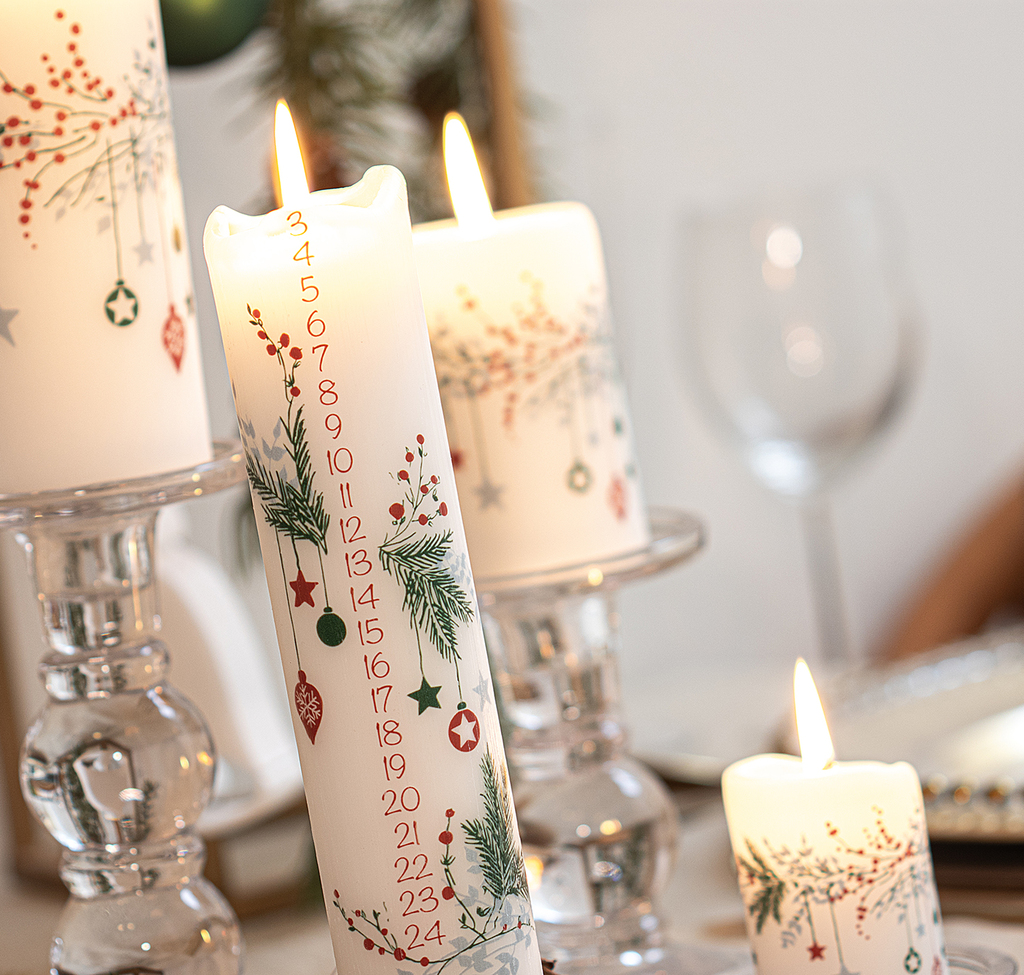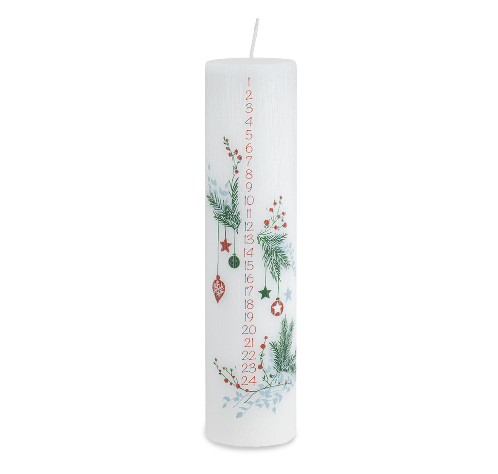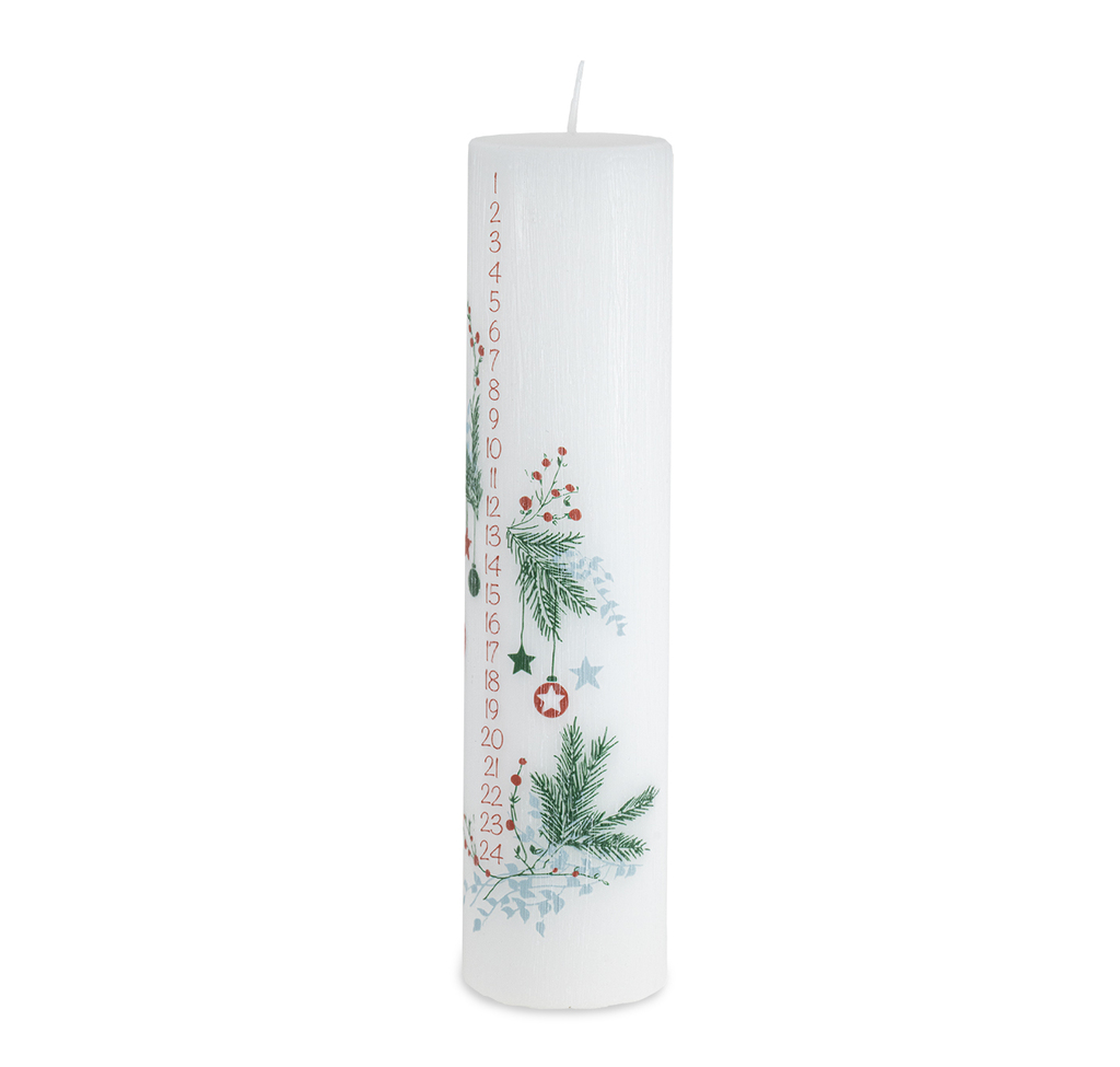 Na svíčce jsou tištěna čísla od 1 do 24, která vám každý den odpočítají zbývající dny do Vánoc. Můžete ji umístit na váš stůl, parapet nebo komodu a každý den si užívat okamžik, kdy zapálíte svíčku a posunete odpočet blíže k Vánocům.