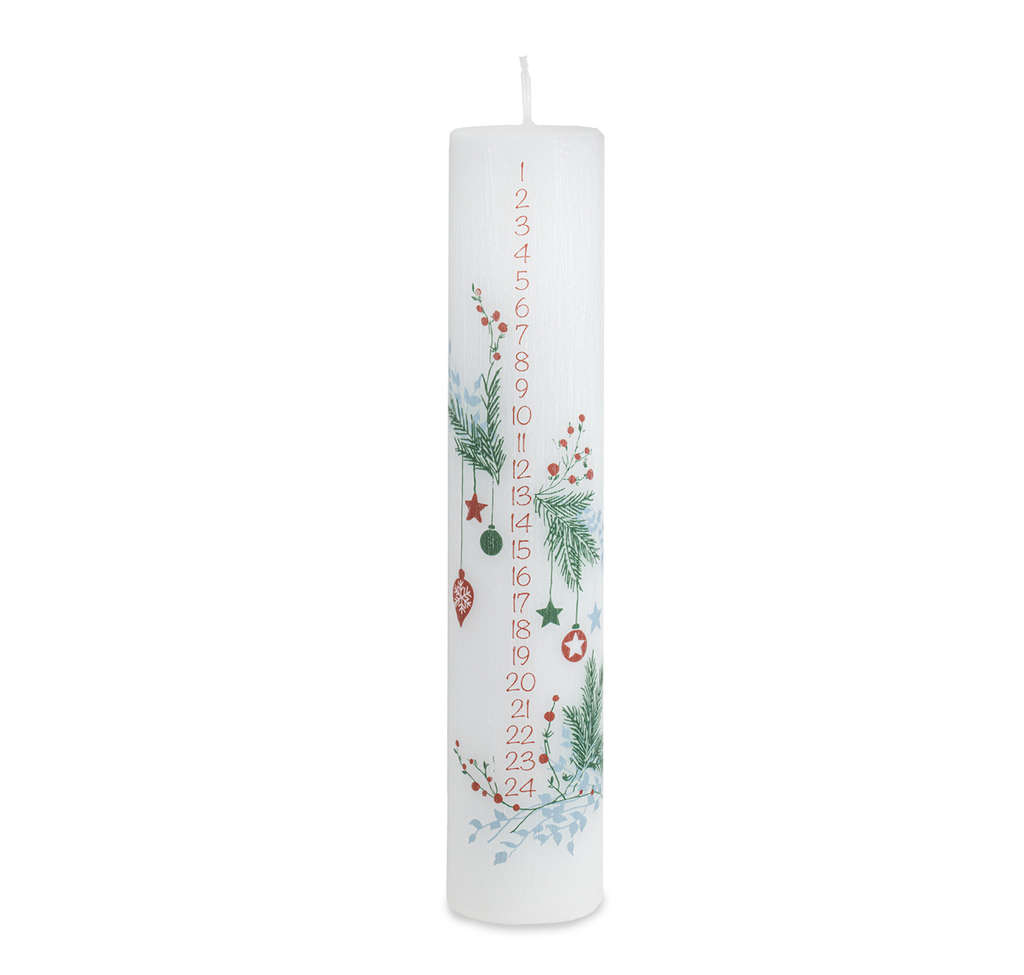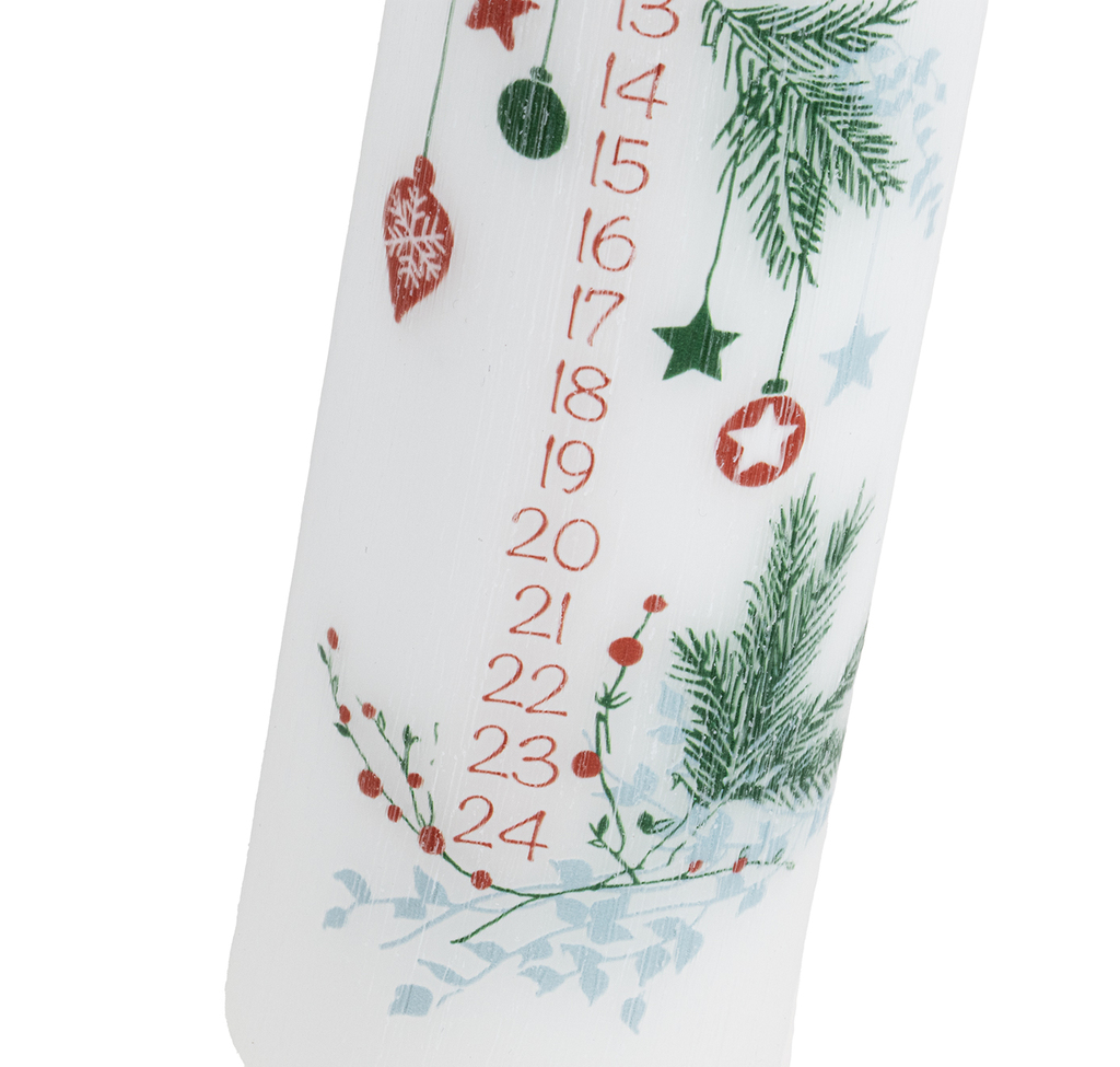 Na svíčce jsou tištěna čísla od 1 do 24, která vám každý den odpočítají zbývající dny do Vánoc. Můžete ji umístit na váš stůl, parapet nebo komodu a každý den si užívat okamžik, kdy zapálíte svíčku a posunete odpočet blíže k Vánocům.