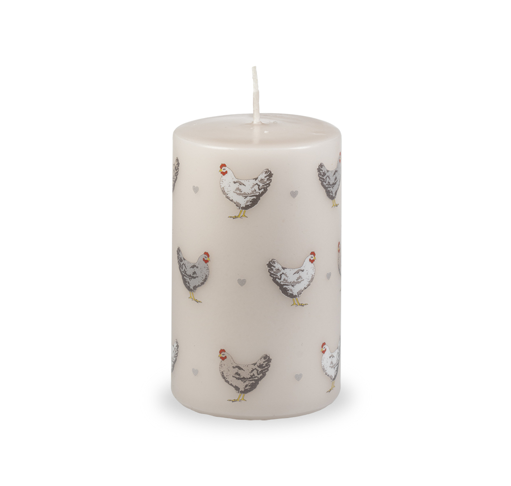 Béžová svíčka se slepičkami (M)