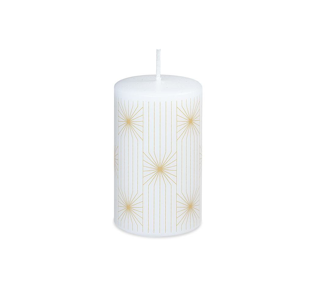 Bílá svíčka s moderními pruhy