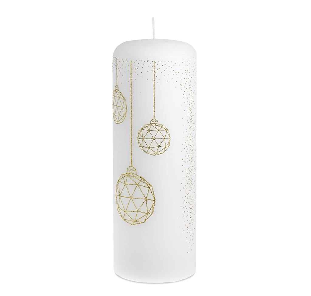 Velká křídově bílá vánoční svíčka je ideální jako hlavní prvek dekorace. Její výška nechává zlatý tisk krásně rozvinout, a metalický povrch působí slavnostně, ale neokázale. Ideální barva pro kombinaci s dalšími barvy kolekce Evergleam.
