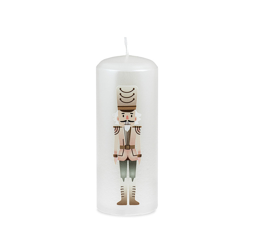 Bílá vánoční svíčka s růžovým louskáčkem (M)