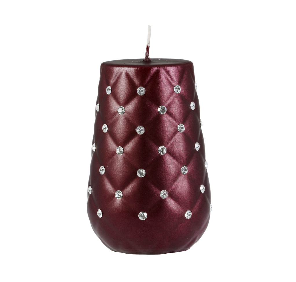 Diamantová svíčka v bordo metalické barvě ručně zdobená kamínky Preciosa.