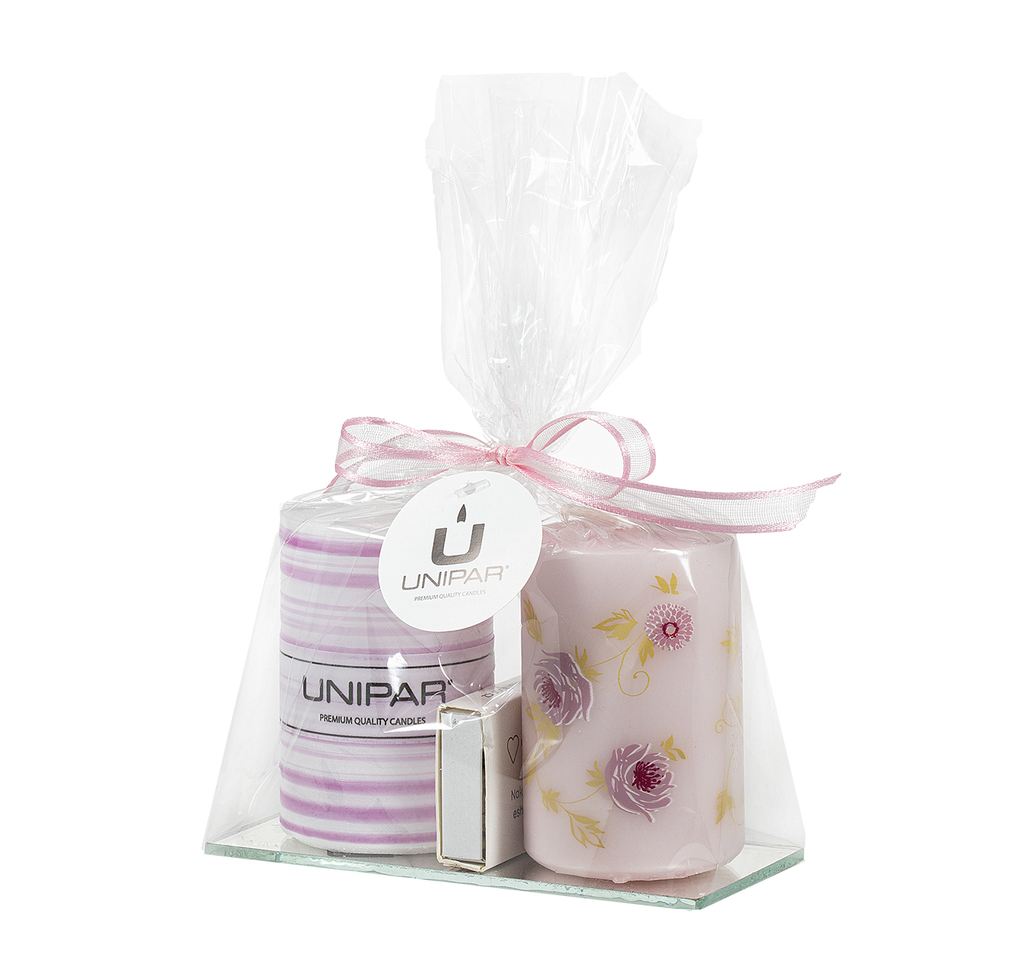 Dárkový balíček dvou svíček z různých kolekcí laděných do růžových odstínů.