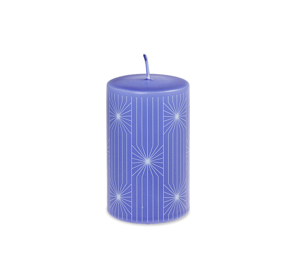 Fialová svíčka s moderními pruhy
