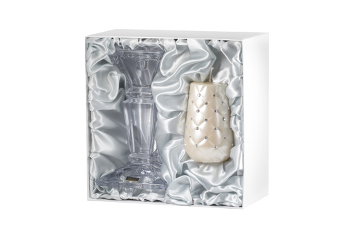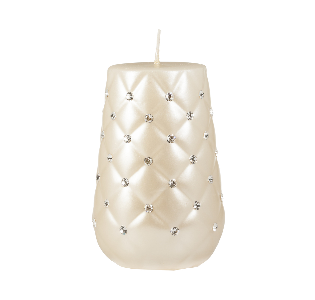 Diamantová svíčka v krémové metalické barvě ručně zdobená kamínky Preciosa.