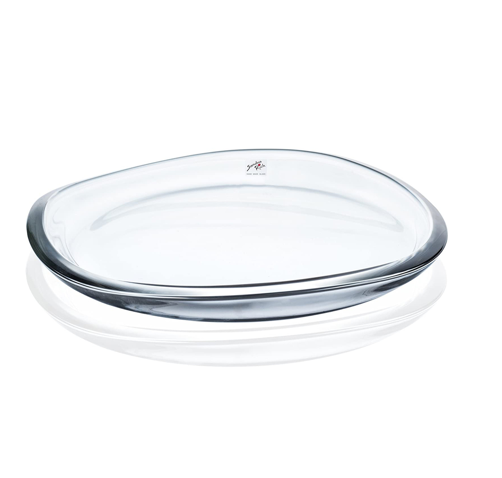 Elegantní skleněný kulatý tác o průměru 17 cm (vnější 21 cm) a výšce 2,5 cm.