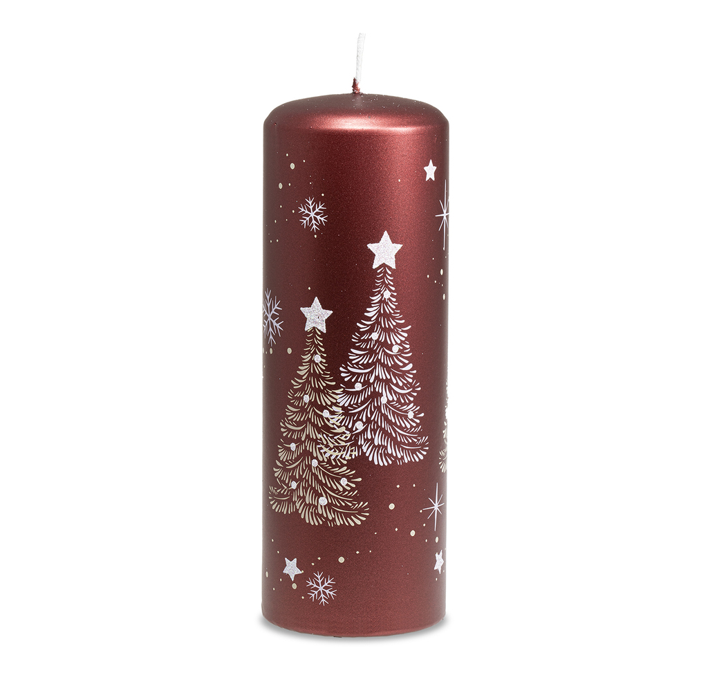 Vytvořte výrazný vánoční dojem s naší temně červenou svíčkou ve velikosti 70x200 mm. Barva vášně se prolíná s dekorem bílých a krémových stromečků, vytvářející magickou vánoční atmosféru plnou radosti a tepla.