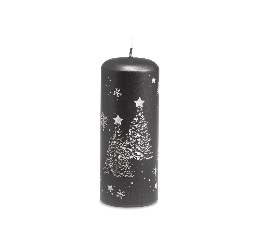 Prohlubte atmosféru vánoční tajemnosti s naší elegantní svíčkou ve velikosti 60x150 mm v antracitové barvě. Tato svíčka přináší sofistikovaný kontrast do vašeho prostoru, a ve spojení s dekorem bílých a krémových stromečků s třpytivými detaily vytvoříte jedinečný vánoční zážitek.