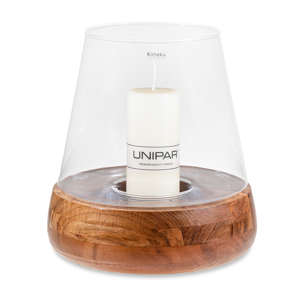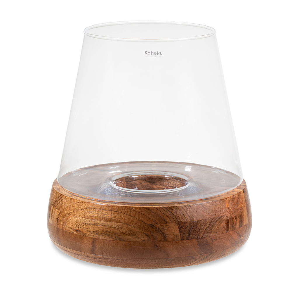 Velká lucerna Ortega je kombinací přírodního luxusu a moderního designu. Podstavec z exotického dřeva v teplém, světlém odstínu působí pevně a stabilně, zatímco skleněná část vytváří vzdušný, čistý dojem. Její konický tvar, široký u základny a jemně se zužující směrem vzhůru, dodává lucerně noblesní siluetu, která krásně vynikne v moderních i tradičních interiérech.