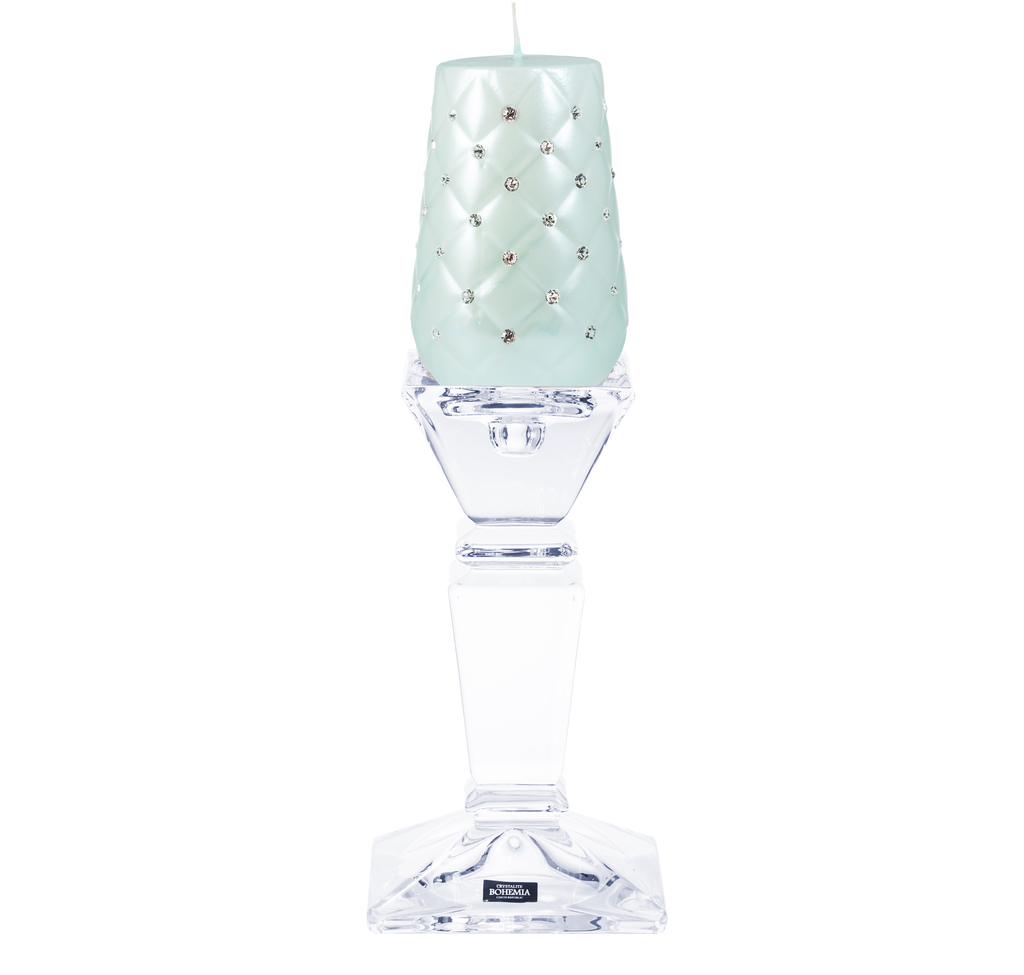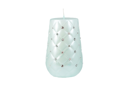 Součástí luxusního dárkového setu je elegantní, metalízově tyrkysová, ručně zdobená svíčka s PRECIOSA kamínky (Cone 80 x 120 mm).