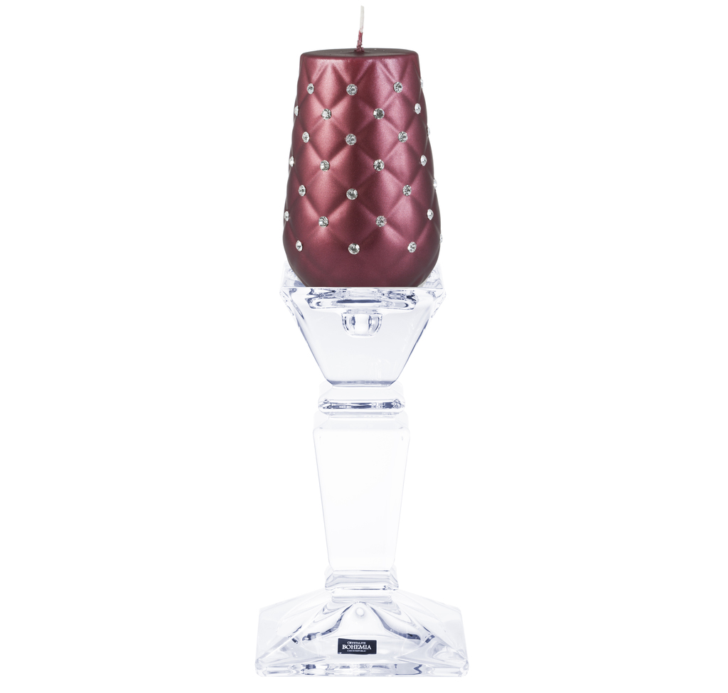 Součástí luxusního dárkového setu je elegantní, metalízově vínová, ručně zdobená svíčka s PRECIOSA kamínky (Cone 80 x 120 mm).