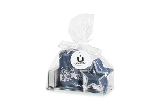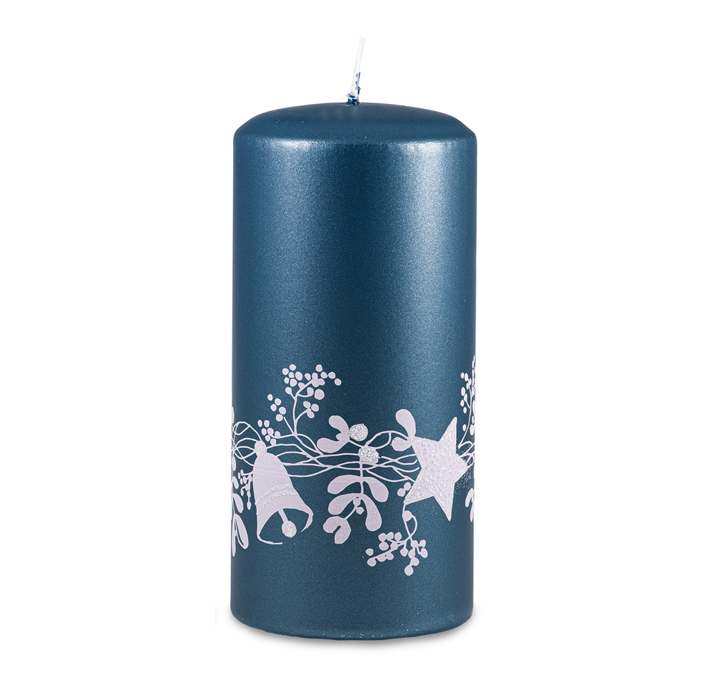 Modrá svíčka s vánočním motivem (L)