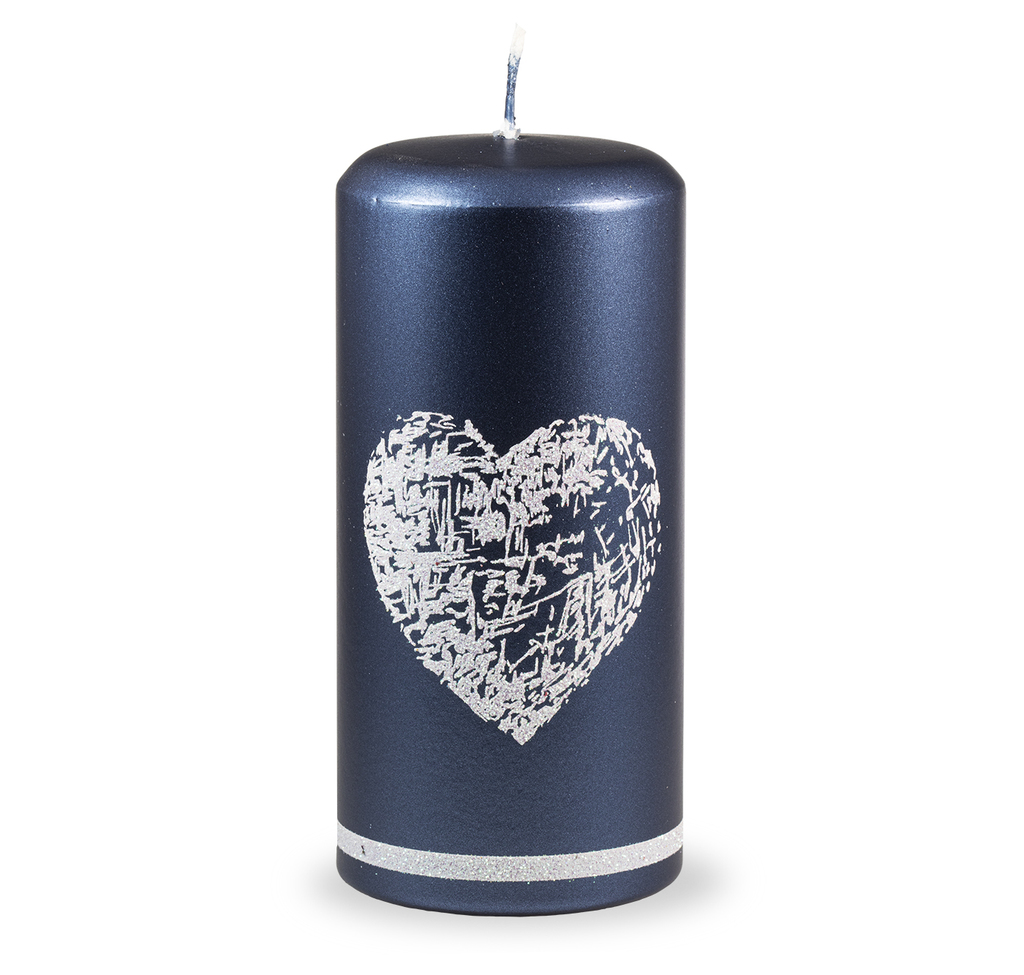 Originální svíčka v modré metalízové barvě, která se s oblibou aranžuje nejen na svatební tabule. Modrá barva v kombinaci s velkým třpytivým srdcem vytváři pocit luxusu, krásy a neobyčenosti.