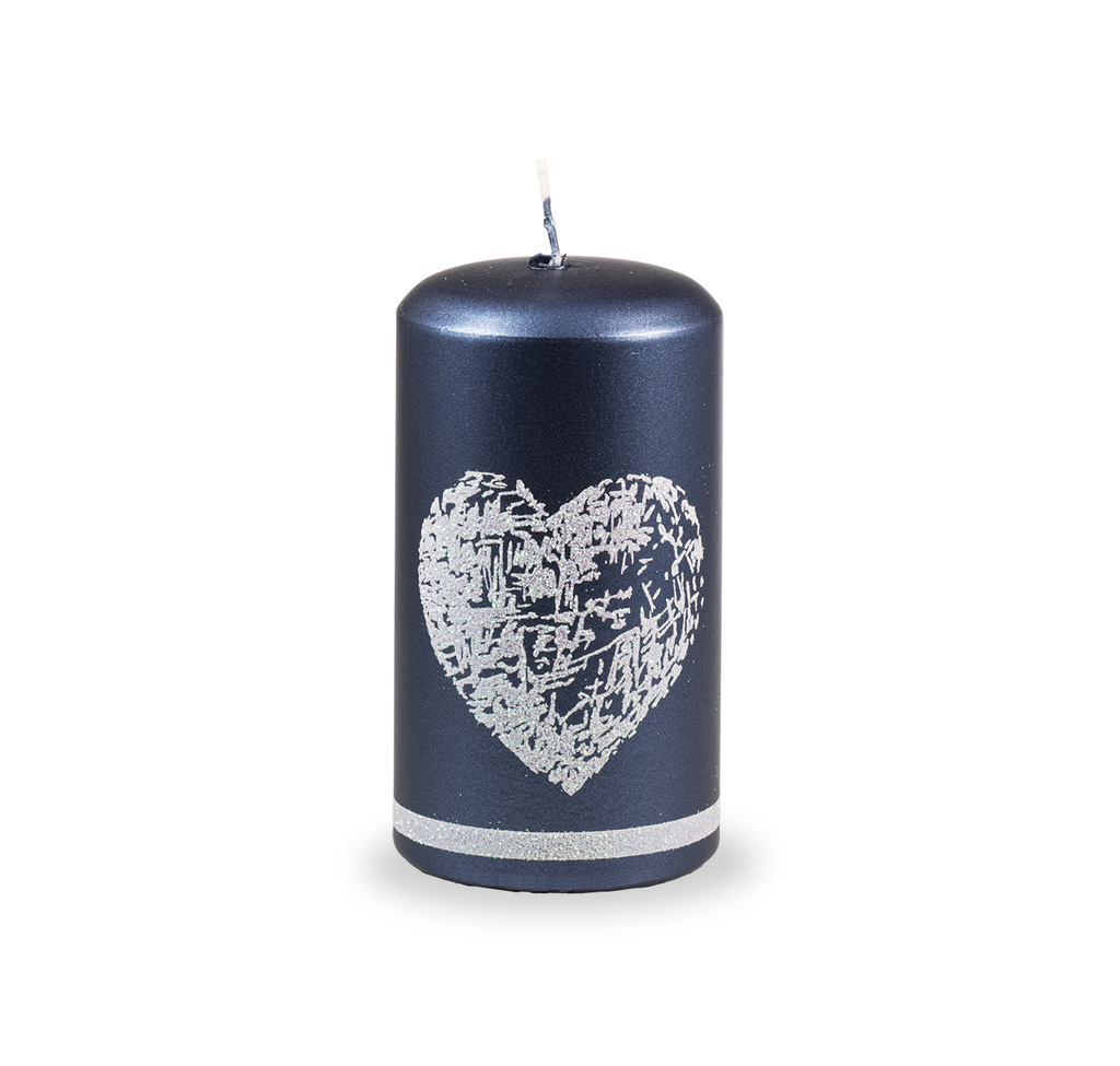 Originální svíčka v modré metalízové barvě, která se s oblibou aranžuje nejen na svatební tabule. Modrá barva v kombinaci s velkým třpytivým srdcem vytváři pocit luxusu, krásy a neobyčenosti.