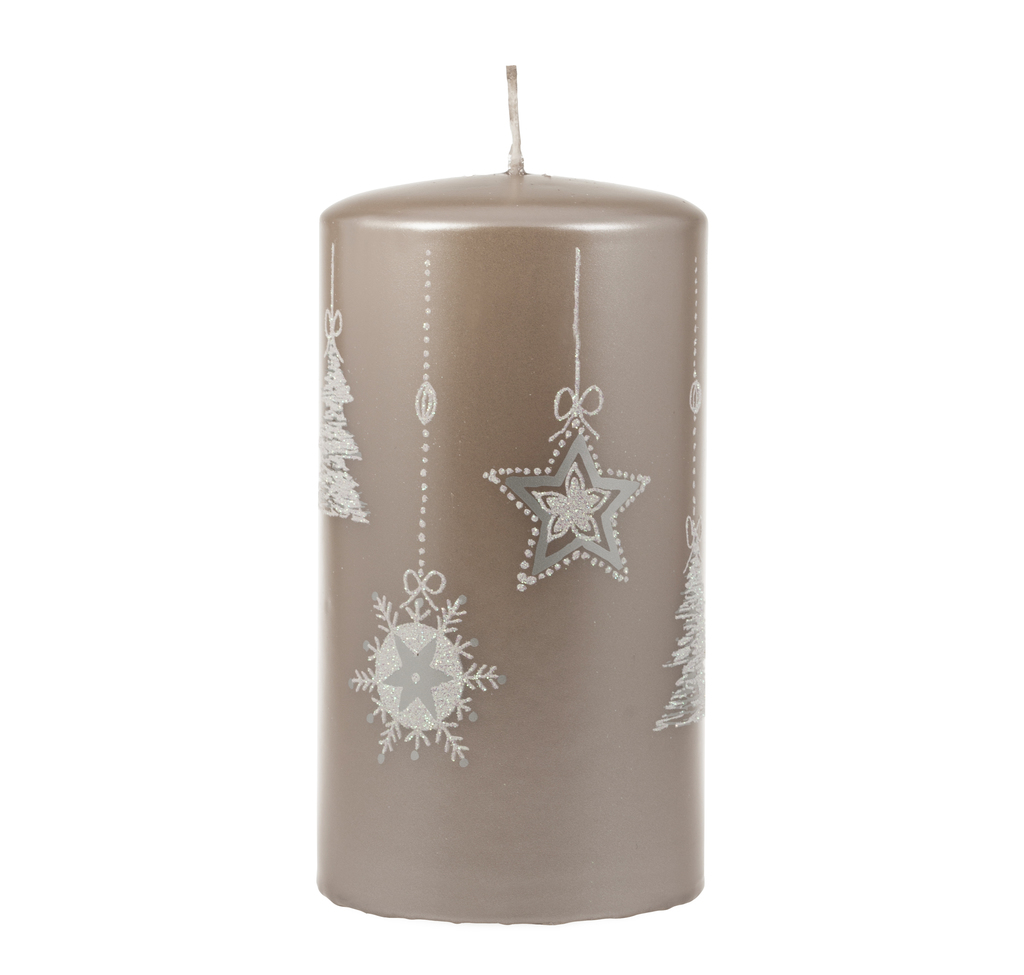 Tento design moka svíčky má své kouzlo v jednoduchosti a jemnosti vánočních dekorů, které jsou pocukrované bílým třpytem.