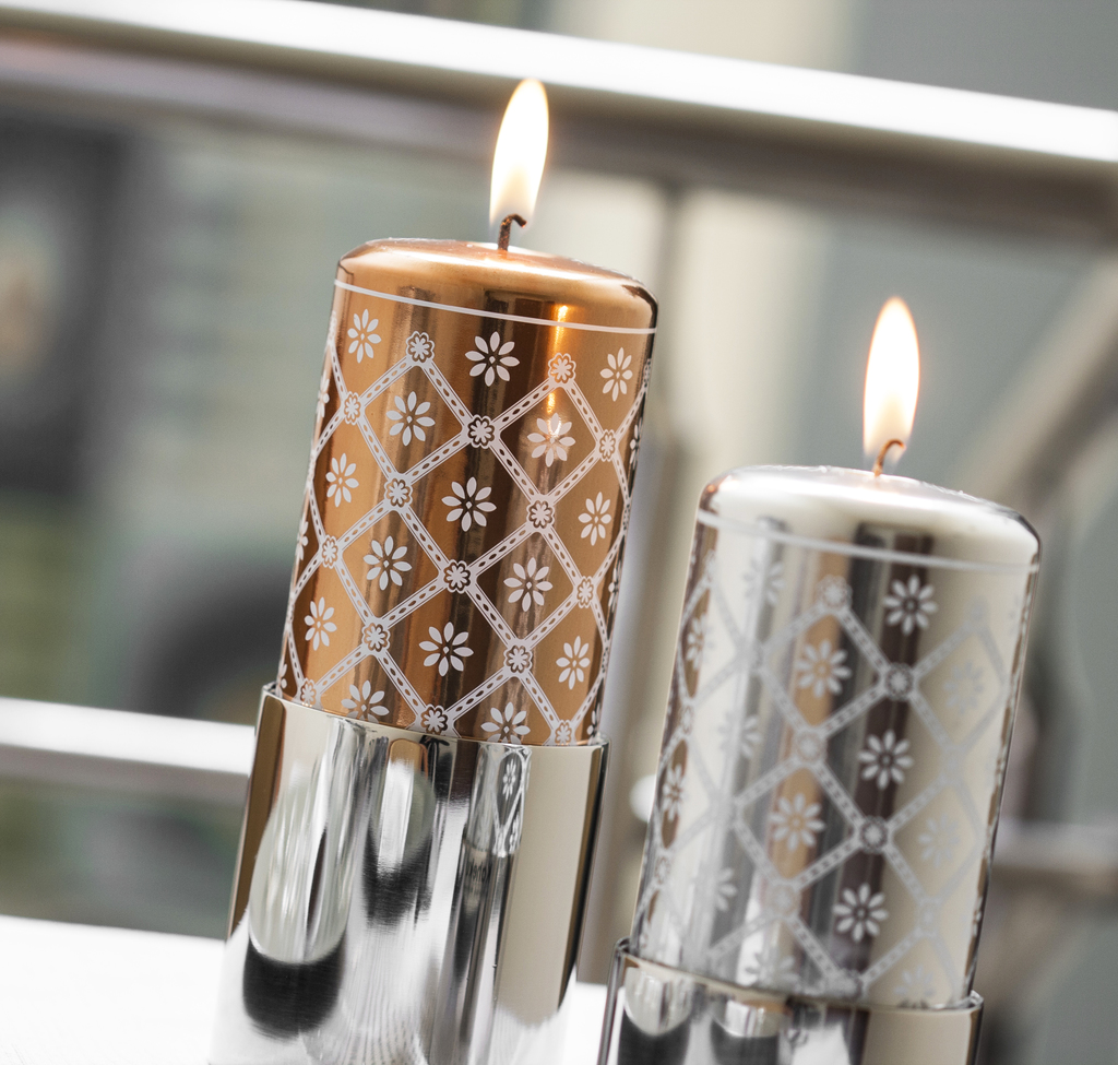 Svícen z nerezové oceli v moderním designu značky Kaheku. Svícen je vhodný pro svíčky do průměru 7 cm.