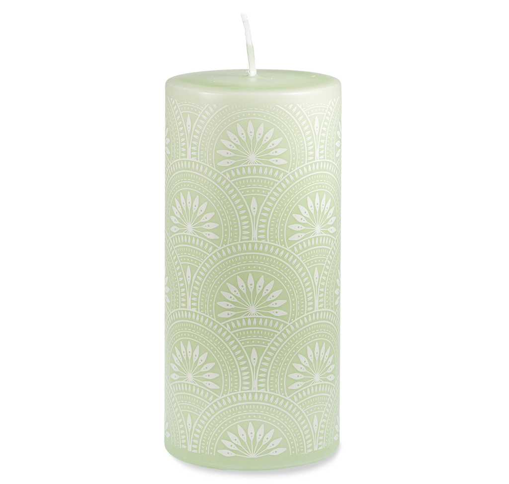 Jemná pastelově zelená barva s dekorem velkých bílých květinových vějířků vás krásně naladí na přicházející teplé dny.