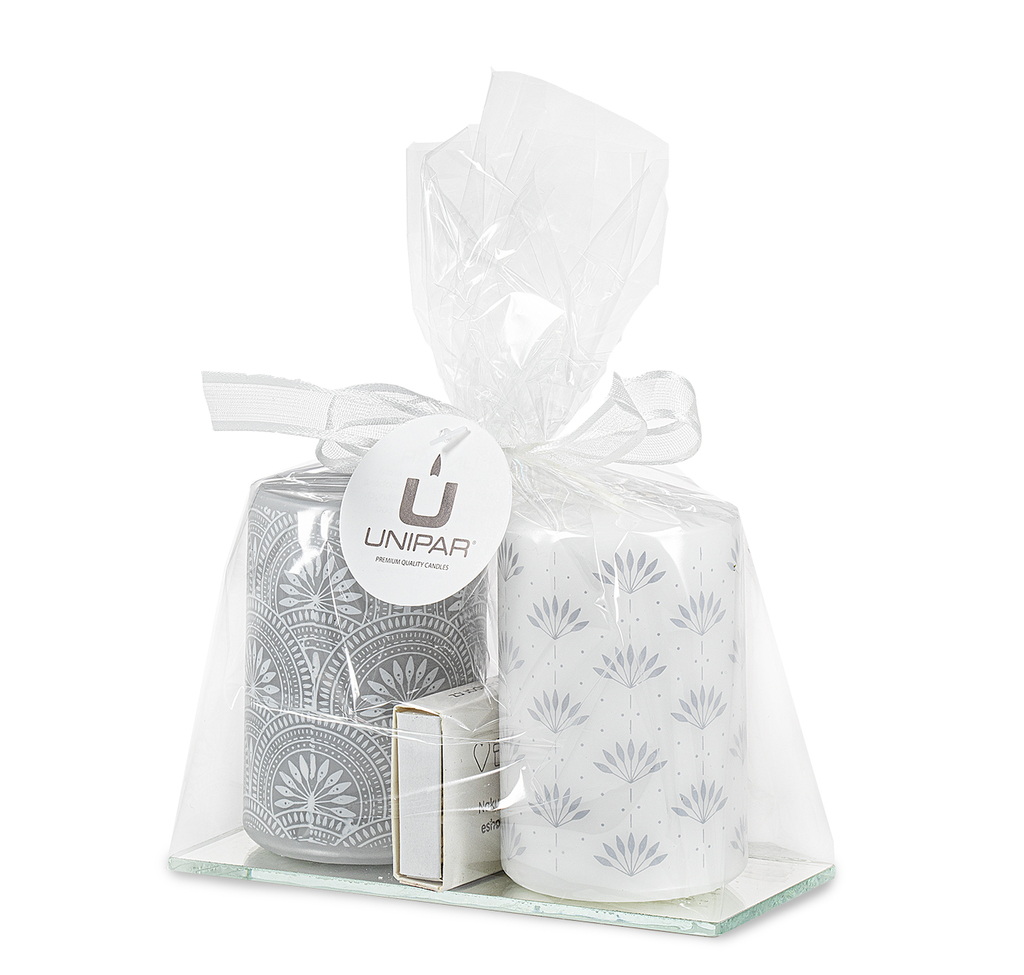 Šedý dárkový balíček dvou svíček z kolekce Surprise