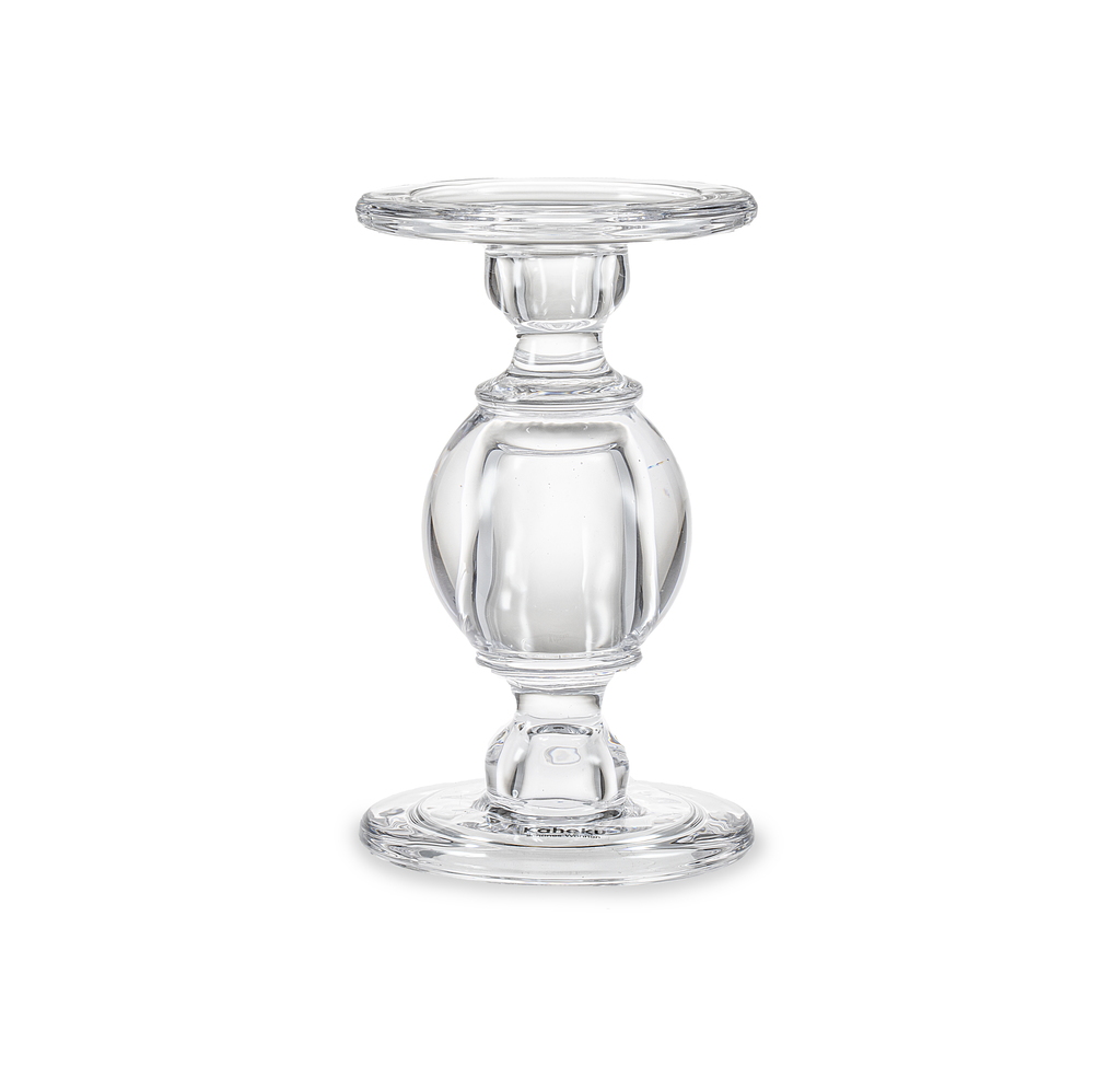 Skleněný svícen v elegantním tvaru značky Kaheku je vhodný pro svíčky do průměru 8 cm.