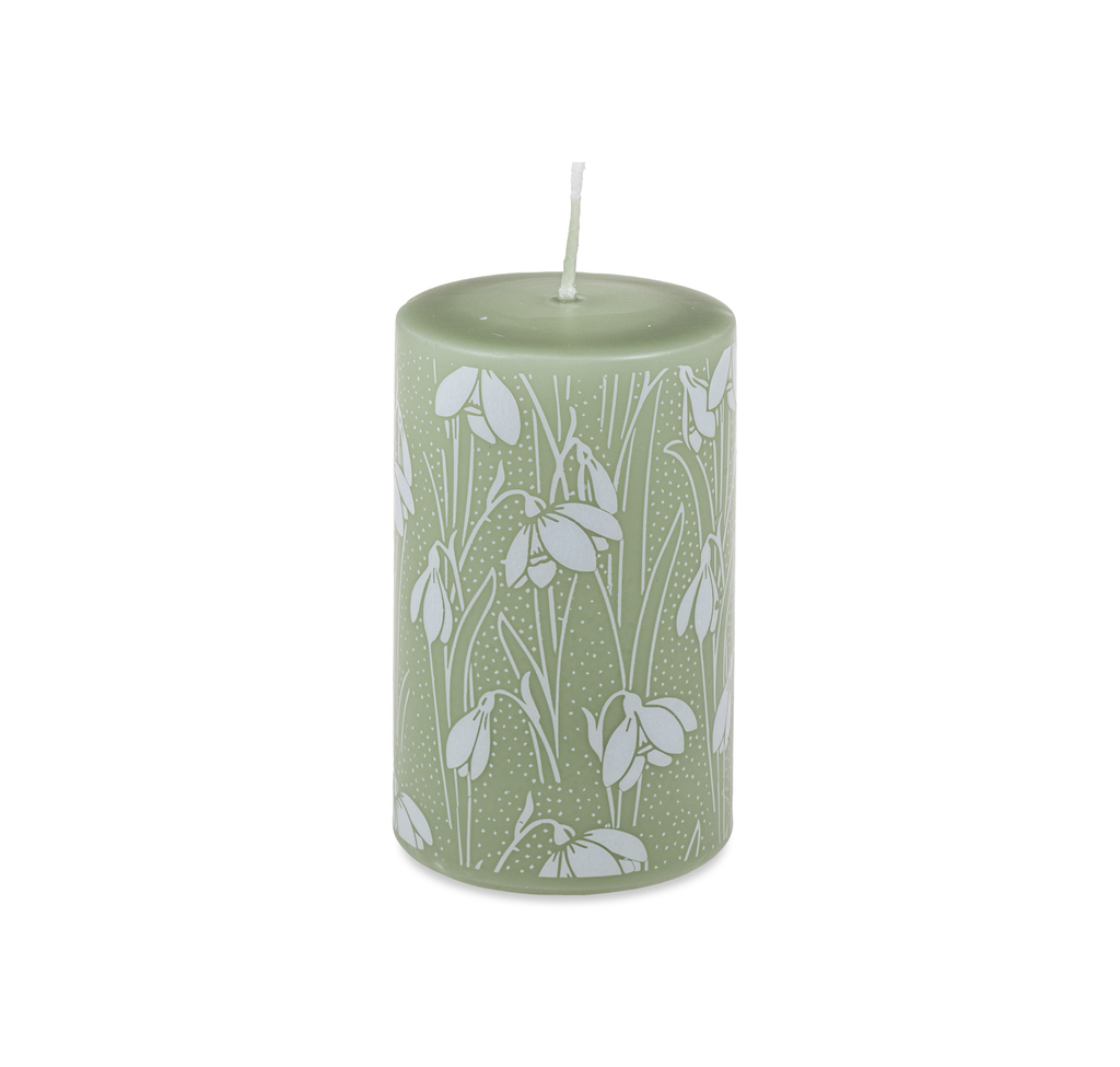 Zahalte svůj interiér do uklidňujícího odstínu olivově zelené s touto elegantní svíčkou střední velikosti. Květinový motiv sněženek dodává celému designu romantický nádech a vytváří harmonickou kombinaci přírodní svěžesti a jemnosti. Perfektní volba pro jarní dekoraci.