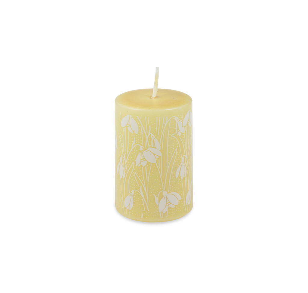 • Světle žlutá svíčka s motivem sněženek Snowdrop Yellow Pillar 50x75