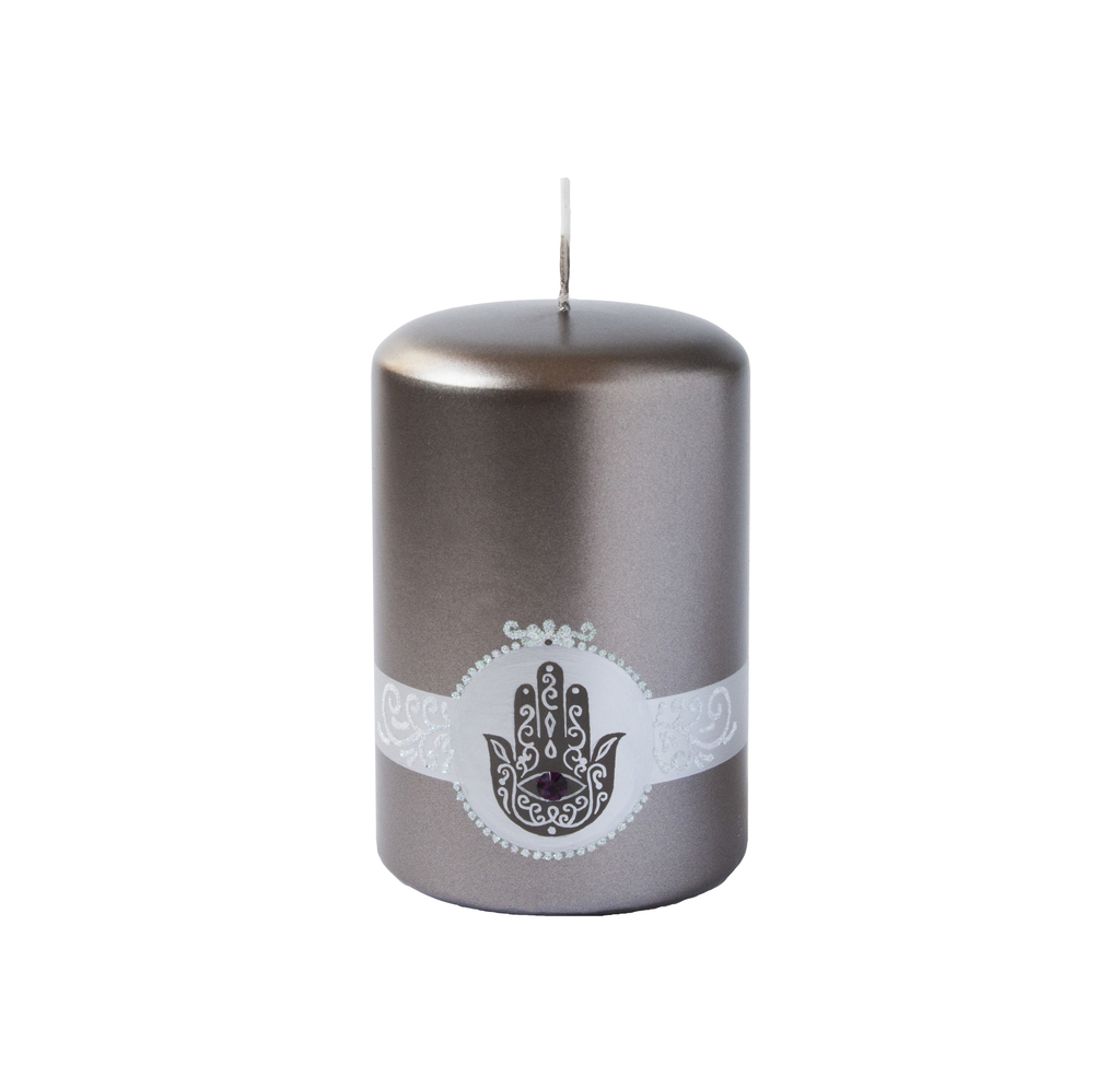 Tato střední svíčka v hnědé metalické barvě vychází z izraelské tradice a ve světě se všeobecně stala trendem.