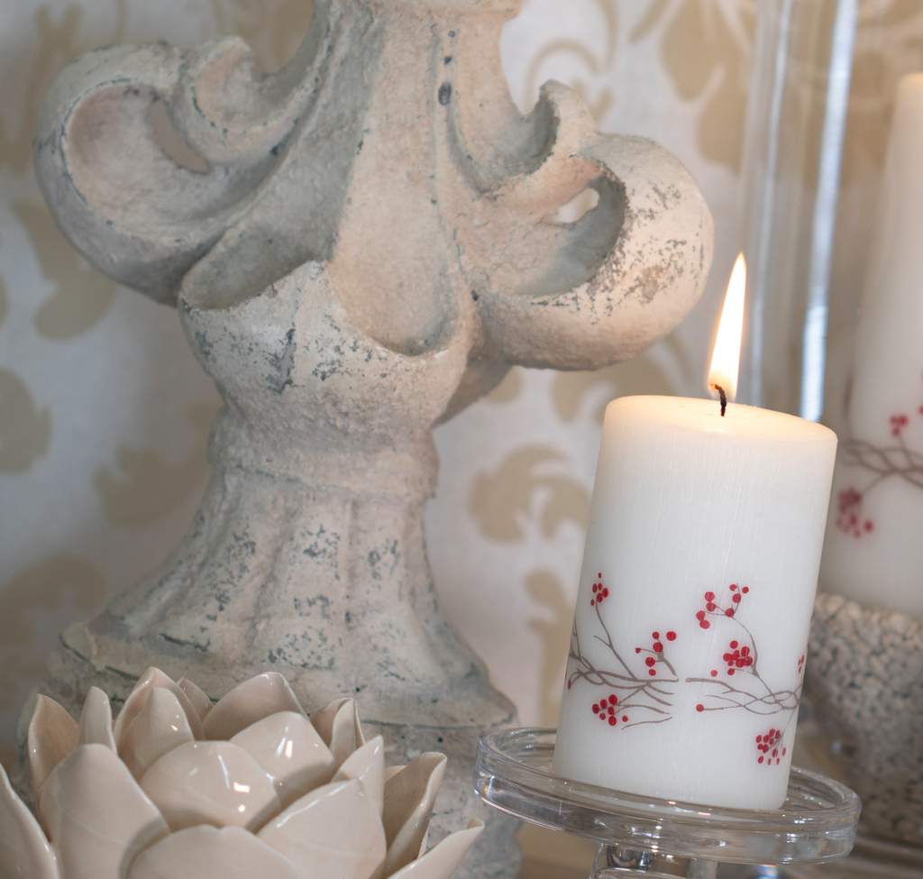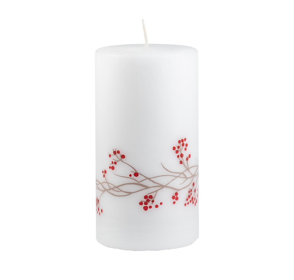 Svíčka z nové limitované edice s motivem červených šípků. Tato velká svíčka má ručně škrábaný povrch, který dotvoří vašemu interiéru přírodnější nádech.