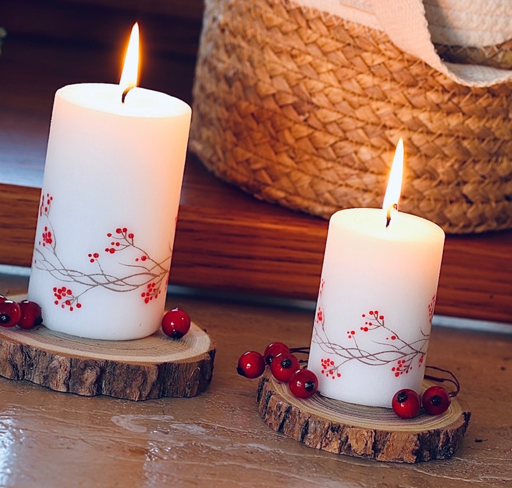 Svíčka z nové limitované edice s motivem červených šípků. Tato velká svíčka má ručně škrábaný povrch, který dotvoří vašemu interiéru přírodnější nádech.