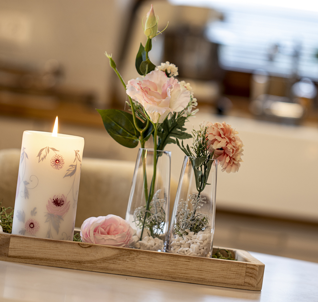 Svíčka s růžovými růžičkami (M)