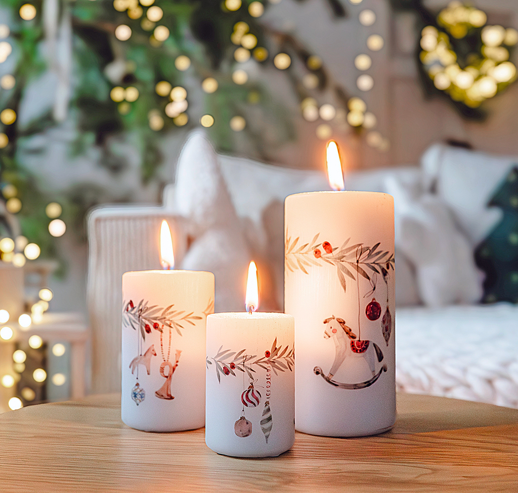 Malá vánoční svíčka z kolekce Nostalgie v sobě nese kousek tichého zimního příběhu. Když plamínek prosvítí její bílý povrch, ilustrace houpacího koníčka a jemných ozdob ožije, jako by se znovu rozezněly kroky Vánoc, na které jsme čekali celý rok.