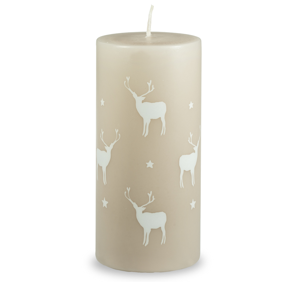 Vánoční béžová svíčka s motivem jelenů (L)