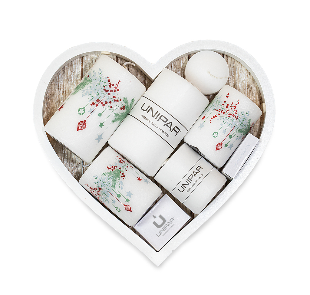 Součástí tohoto balíčku je dřevěná dekorační podložka ve tvaru srdce. Tato dekorace dodává vašemu interiéru kouzelný nádech a perfektně doplní vánoční atmosféru.