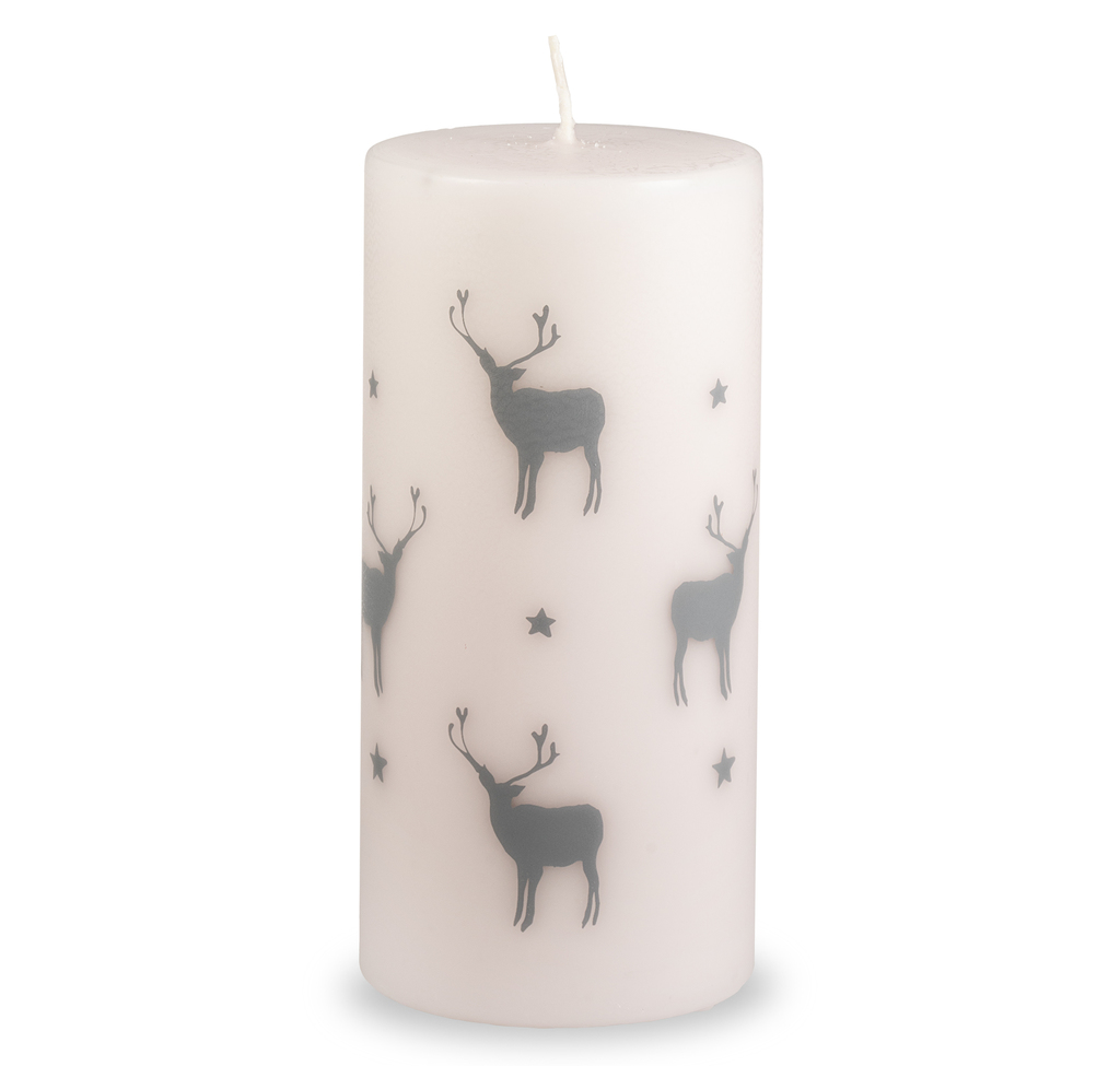 Svíčka z nové vánoční edice s motivem šedých jelenů a hvězdiček ve světle růžové barvě. Nová kolekce je inspirovaná jednoduchým severským designem.