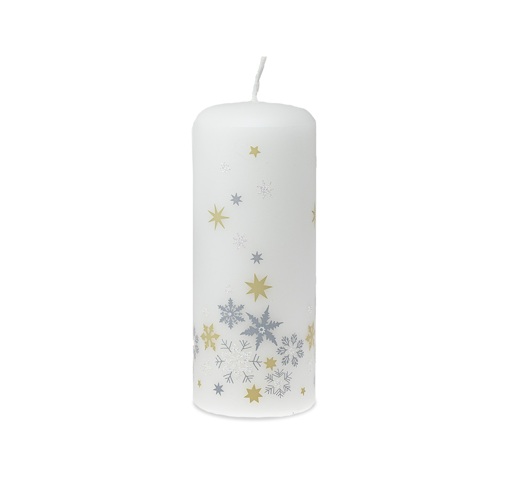 Každá vánoční svíčka je zdobena jemnými vločkami a hvězdičkami, které v mnoha podobách zdánlivě padají a tvoří vrstvy sněhu. Tento detailní design evokuje klidné zimní večery, kdy se krajina halí do sněhové peřiny. Některé detaily na svíčkách jsou navíc třpytivé, jako by byly pokryty mrazivými krystalky, které září jako mráz na sněhu.