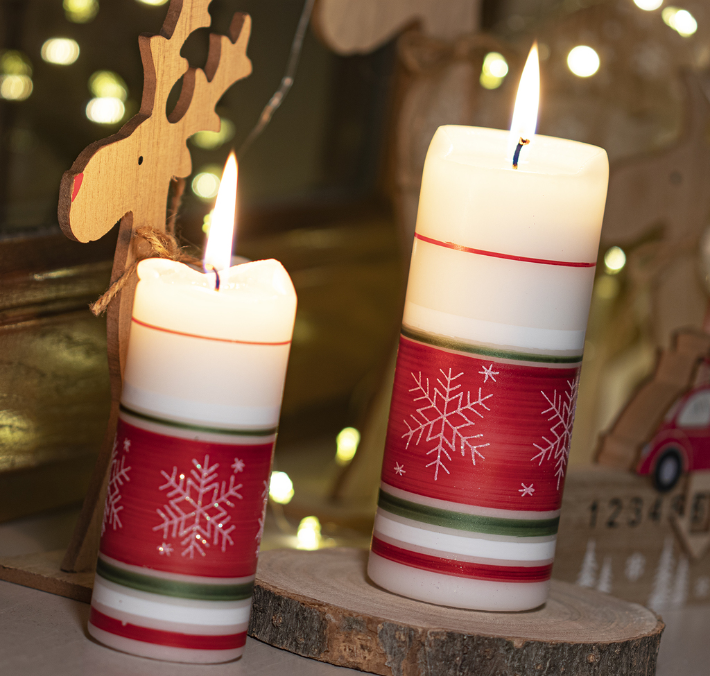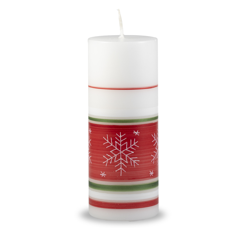 Vánoční svíčka bílo-červená s vločkami (L)