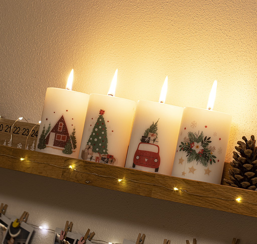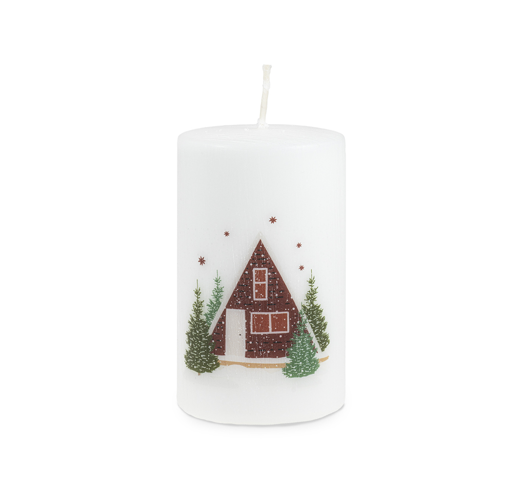 Svíčka s krásným motivem zasněženého vánočního domečku s ručně škrábaným povrchem doladí váš interiér k dokonalé vánoční atmosféře.