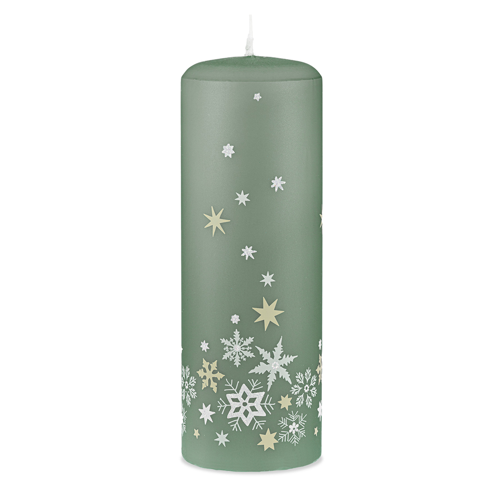 Vánoční svíčka zelená s vločkami (L)