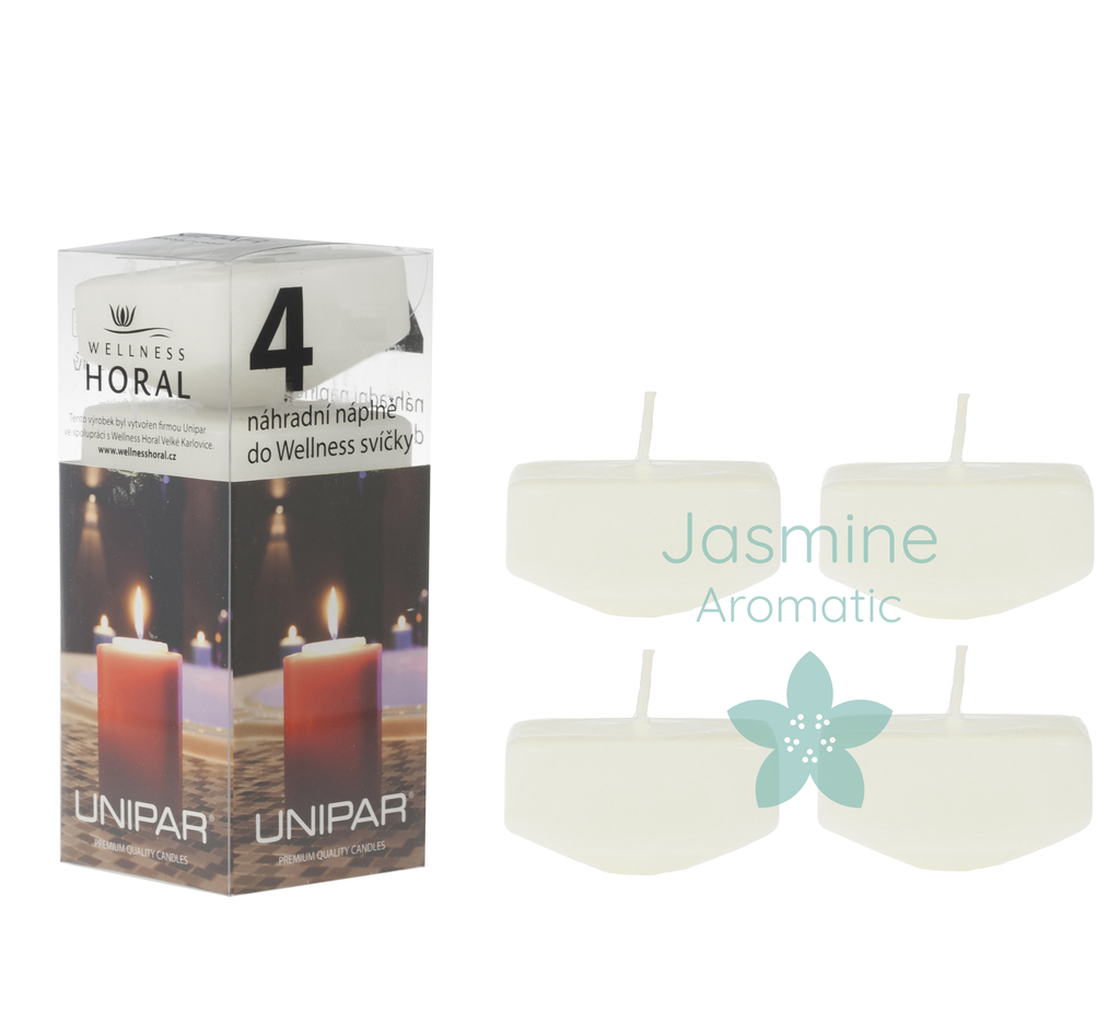 Náhradní náplň do těla svíčky z kolekce Wellness ve světle žluté barvě a s vůní Jasmínu.