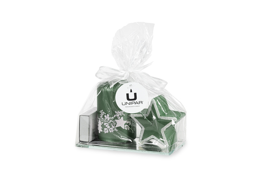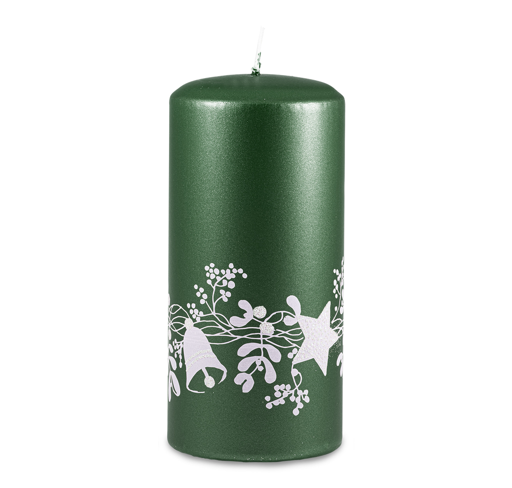 Zelená svíčka s vánočním motivem (L)