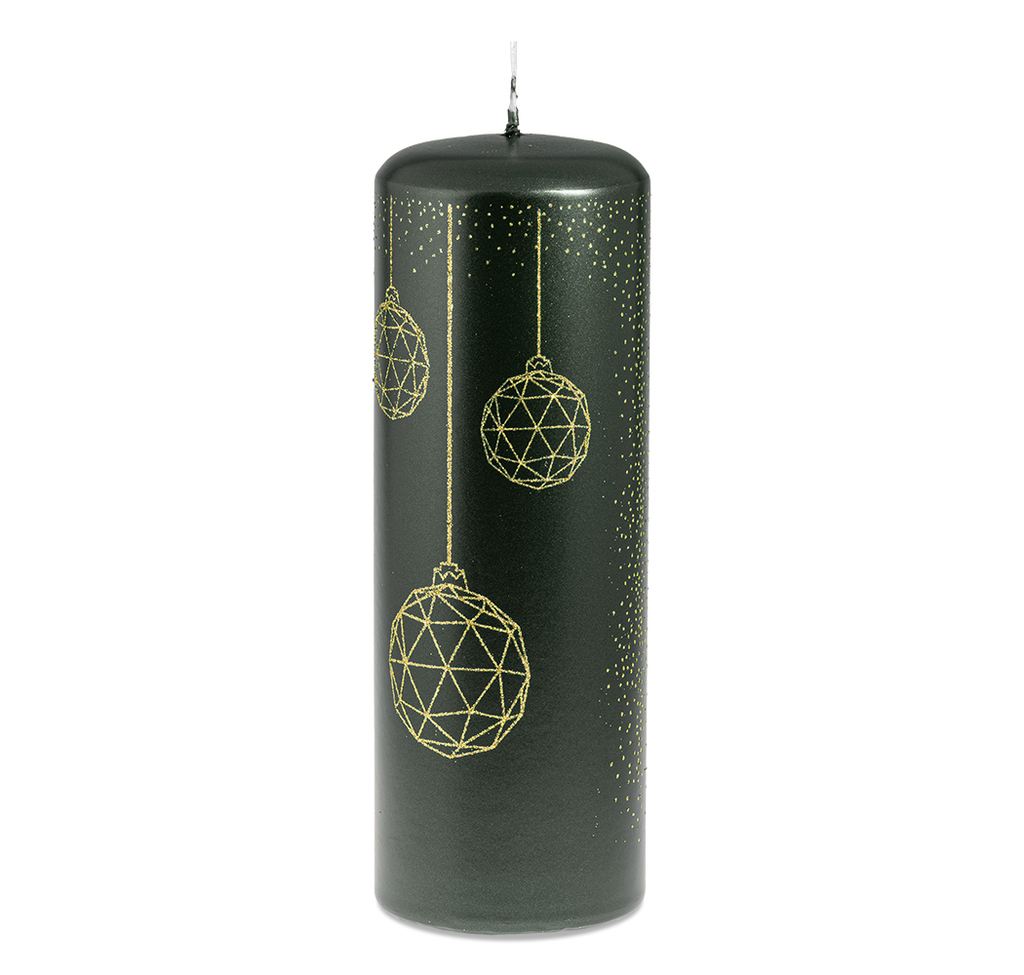 Zelená vánoční svíčka s baňkami