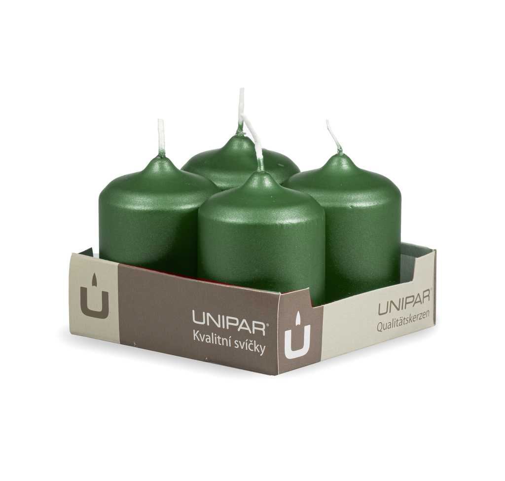 Adventní svíčky v zelené metalické barvě.