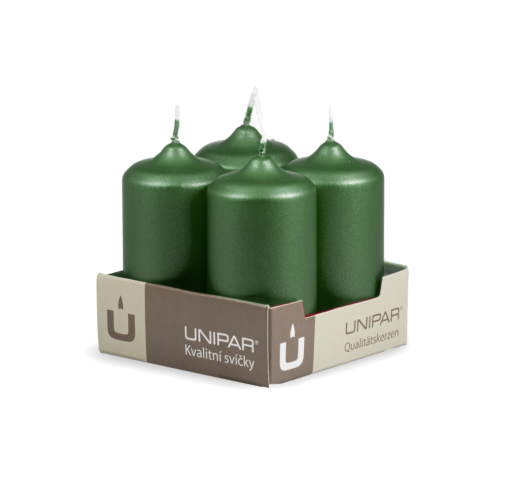 Adventní svíčky v zelené metalické barvě.