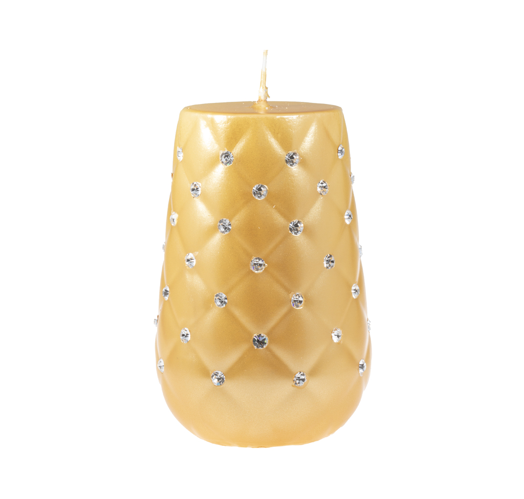 Diamantová svíčka v zlaté metalické barvě ručně zdobená kamínky Preciosa.