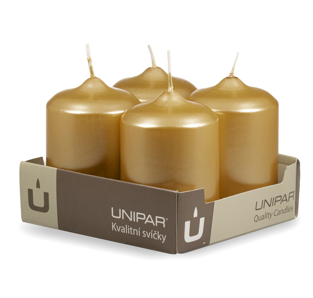 Adventní svíčky ve zlaté metalické barvě.